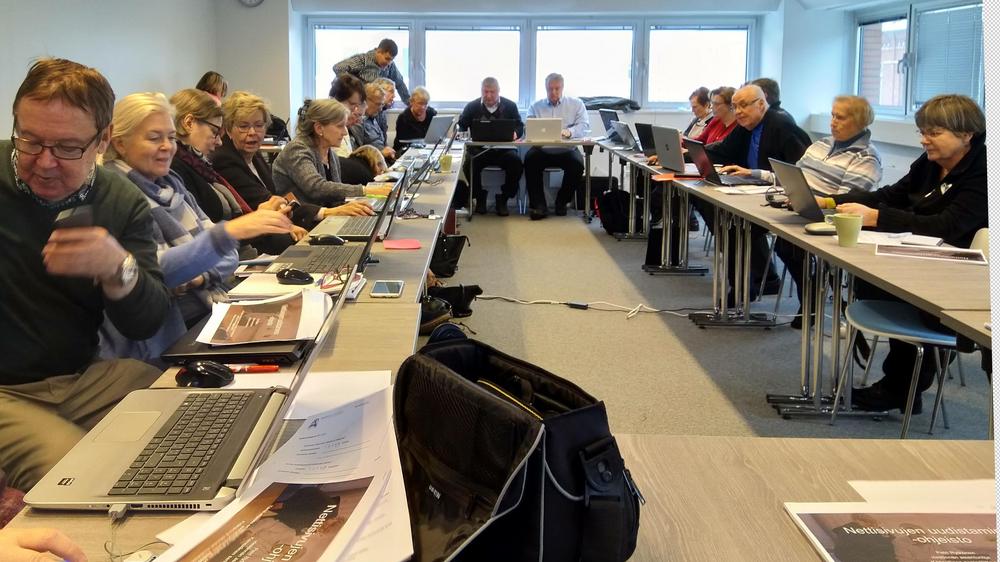 Piirin tiedostusvastaavat tutustuivat uuteen nettisivustoon Petri Rytkösen johdolla Helsingissa Sosten-tiloissa 29.1.2019.